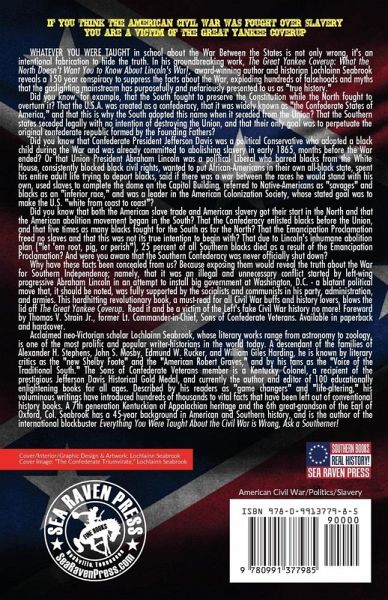 If you think the American Civil War was fought over slavery, if you think Abraham Lincoln was the "Great Emancipator," if you think that the Confederate Flag is a symbol of racism, you are a victim of what award-winning author and historian Colonel Lochlainn Seabrook calls "The Great Yankee Coverup!" Whatever you were taught in school about America's War of 1861 is not only wrong, it's an intentional fabrication to hide the truth. In his groundbreaking work, The Great Yankee Coverup: What the North Doesn't Want You to Know About Lincoln's War! Col. Seabrook reveals a 150 year conspiracy to suppress the facts about the War, exploding hundreds of falsehoods and myths that the gaslighting mainstream has purposefully and nefariously presented to us as "true history." Did you know, for example, that the South fought to preserve the Constitution while the North fought to overturn it? That the U.S.A. was created as a confederacy, that it was widely known as "the Confederate States of America," and that this is why the South adopted this name when it seceded from the Union? That the Southern states seceded legally with no intention of destroying the Union, and that their only goal was to perpetuate the original confederate republic formed by the Founding Fathers? Did you know that Confederate President Jefferson Davis was a political Conservative who adopted a black child during the War and was already committed to abolishing slavery in early 1865, months before the War ended? Or that Union President Abraham Lincoln was a political Liberal who barred blacks from the White House, consistently blocked black civil rights, wanted to put African-Americans in their own all-black state, spent his entire adult life trying to deport blacks, said if there was a war between the races he would stand with his own, used slaves to complete the dome on the Capitol Building, referred to Native-Americans as "savages" and blacks as an "inferior race," and was a leader in the American Colonization Society, whose stated goal was to make the U.S. "white from coast to coast"? Did you know that both the American slave trade and American slavery got their start in the North and that the American abolition movement began in the South? That the Confederacy enlisted blacks before the Union, and that five times as many blacks fought for the South as for the North? That the Emancipation Proclamation freed no slaves and that this was not its true intention to begin with? That due to Lincoln's inhumane abolition plan ("let 'em root, pig, or perish"), 25 percent of all Southern blacks died as a result of the Emancipation Proclamation? And were you aware that the Southern Confederacy was never officially shut down? Why have these facts been concealed from us? Because exposing them would reveal the truth about the War for Southern Independence; namely, that it was an illegal and unnecessary conflict started by left-wing progressive Lincoln in an attempt to install big government at Washington, D.C. - a blatant political move that, it should be noted, was fully supported by the socialists and communists in his party, administration, and armies. This hard-hitting revolutionary book, a must-read for all Civil War buffs and history lovers, blows the lid off The Great Yankee Coverup. Read it and be a victim of the Left's fake Civil War history no more! Foreword by Thomas V. Strain Jr., former Lt. Commander-in-Chief, Sons of Confederate Veterans. Available in paperback and hardcover. Col. Seabrook's other titles include: Everything You Were Taught About the Civil War is Wrong, Ask a Southerner!; Confederate Monuments; Lincoln's War: The Real Cause, the Real Winner, the Real Loser; Confederate Flag Facts; The Bittersweet Bond: Race Relations in the Old South as Described by White and Black Southerners.