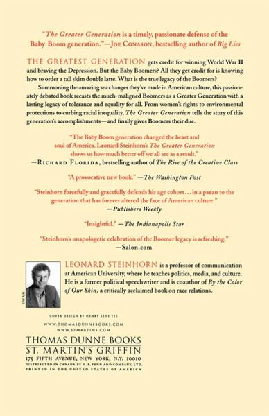 "Lenny Steinhorn presents compelling evidence that Boomers significantly shaped-and improved-their times. This is a counterintuitive examination of a generation that is far more complex and far more influential than is commonly believed." -Frank Senso, former CNN Washington bureau chief While the Greatest Generation deserves our praise for surviving the Depression and fighting in World War II, the Baby Boomers, this book argues, are in many ways as great a generation-if not greater-for how they have advanced equality and freedom at home. It's fashionable to mock Boomers as self-involved and materialistic. But what really is the true legacy of the Boomers? To understand how Boomers have changed America, think back to the 1950s-but without the nostalgia. Women were kept at home, minorities were denied their dignity, homosexuality was a crime, and anyone who marched to a different drummer was labeled un-American and viewed as a threat. Today we live in a far more open, inclusive, tolerant, and equal America than at any other time in our history. And that's because Baby Boomers, from the Sixties onward, have fought a great cultural war to free America from its prejudices, inequalities, and fears. The Greater Generation tells the story of this generation's accomplishments-and finally gives Boomers their due. "The Greater Generation reminds us that today's legacy of social justice, diversity, and individual freedom didn't just fall from the sky; it's a consequence of a hard-fought progressive struggle fought on the home front by a morally engaged American generation." -Marty Kaplan, Air America radio host and director of the Norman Lear Center at the University of Southern Califormnia Annenberg School for Communication