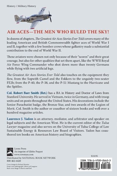 In thirty-five chapters, The Greatest Air Aces Stories Ever Told covers many of the leading American and British Commonwealth fighter aces of WW I and II, together with a few bomber crews whose gallantry made a substantial contribution to the end of WW II. Other nations had their aces, but this book concentrates on American and Commonwealth pilots. These aviators were chosen not only because of their "scores" and their great courage, but also for other qualities which set them apart, like the WWII Royal Air Force Wing Commander who shot down more than 20 Germans while flying with two artificial legs.
