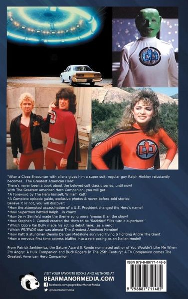After a Close Encounter with aliens gives him a super suit, regular guy Ralph Hinkley reluctantly becomes...The Greatest American Hero! There's never been a book about the beloved cult classic series, until now! With The Greatest American Hero Companion, you will get: *A Foreword by The Hero himself, William Katt! *A Complete episode guide, exclusive photos & never-before-told stories! Believe it or not, you will discover: *How the attempted assassination of a U.S. President changed the Hero's name! *How Superman battled Ralph...in court! *How Jerry Seinfeld made the theme song more famous than the show! *How Stephen J. Cannell created the show to be 'Rockford Files with a superhero!' *Which Cobra Kai Bully made his acting debut here...as a nerd! *Which FRIENDS star was almost The Greatest American Heroine! *How Katt & stuntman Dennis Danger Madalone survived Flying & fighting Andre The Giant *How a nervous first time actress bluffed into a role posing as an Italian model! From Patrick Jankiewicz, the Saturn Award & Rondo nominated author of You Wouldn't Like Me When I'm Angry: A Hulk Companion and Buck Rogers In The 25th Century: A TV Companion comes The Greatest American Hero Companion!