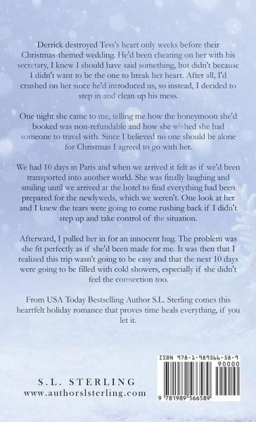 Derrick destroyed Tess's heart only weeks before their Christmas-themed wedding. He'd been cheating on her with his secretary, I knew I should have said something, but didn't because I didn't want to be the one to break her heart. After all, I'd crushed on her since he'd introduced us, so instead, I decided to step in and clean up his mess. One night she came to me, telling me how the honeymoon she'd booked was non-refundable and how she wished she had someone to travel with. Since I believed no one should be alone for Christmas I agreed to go with her. We had 10 days in Paris and when we arrived it felt as if we'd been transported into another world. She was finally laughing and smiling until we arrived at the hotel to find everything had been prepared for the newlyweds, which we weren't. One look at her and I knew the tears were going to come rushing back if I didn't step up and take control of the situation. Afterward, I pulled her in for an innocent hug. The problem was she fit perfectly as if she'd been made for me. It was then that I realized this trip wasn't going to be easy and that the next 10 days were going to be filled with cold showers, especially if she didn't feel the connection too. From USA Today Bestselling Author S.L. Sterling comes this heartfelt holiday romance that proves time heals everything, if you let it.