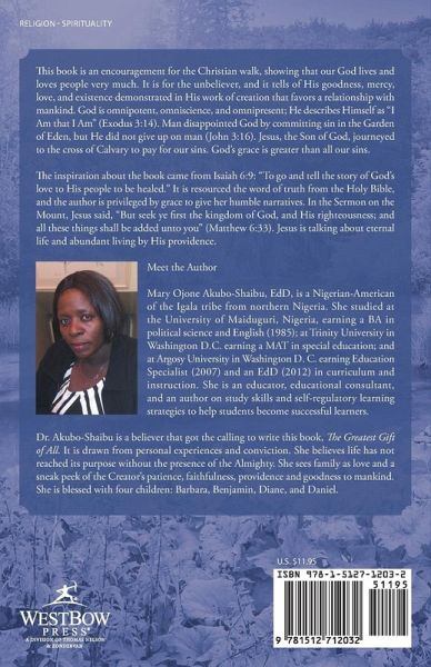 This book is an encouragement for the Christian walk, showing that our God lives and loves people very much. It is for the unbeliever, and it tells of His goodness, mercy, love, and existence demonstrated in His work of creation that favors a relationship with mankind. God is omnipotent, omniscience, and omnipresent; He describes Himself as "I Am that I Am" (Exodus 3:14). Man disappointed God by committing sin in the Garden of Eden, but He did not give up on man (John 3:16). Jesus, the Son of God, journeyed to the cross of Calvary to pay for our sins. God's grace is greater than all our sins. The inspiration about the book came from Isaiah 6:9: "To go and tell the story of God's love to His people to be healed." It is resourced the word of truth from the Holy Bible, and the author is privileged by grace to give her humble narratives. In the Sermon on the Mount, Jesus said, "But seek ye first the kingdom of God, and His righteousness; and all these things shall be added unto you" (Matthew 6:33). Jesus is talking about eternal life and abundant living by His providence.