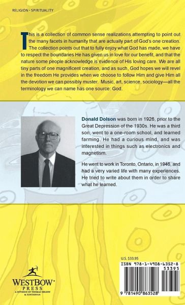 This is a collection of common sense realizations attempting to point out the many facets in humanity that are actually part of God's one creation. The collection points out that to fully enjoy what God has made, we have to respect the boundaries He has given us in love for our benefit, and that the nature some people acknowledge is evidence of His loving care. We are all tiny parts of one magnificent creation, and as such, God hopes we will revel in the freedom He provides when we choose to follow Him and give Him all the devotion we can possibly muster. Music, art, science, sociology-all the terminology we can name has one source: God.