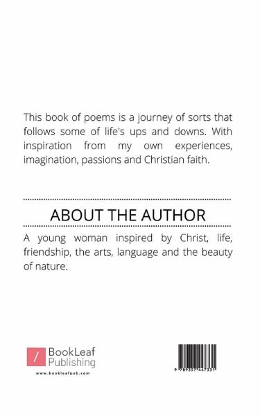 This book of poems is a journey of sorts that follows some of life's ups and downs. With inspiration from my own experiences, imagination, passions and Christian faith.