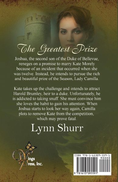 Joshua, the second son of the Duke of Bellevue, reneges on a promise to marry Kate Morely because of an incident that occurred when she was twelve. Instead, he intends to pursue the rich and beautiful prize of the Season, Lady Camilla. Kate takes up the challenge and intends to attract Harold Brumley, heir to a duke. Unfortunately, he is addicted to taking snuff. She must convince him she loves the habit to gain his attention. When Joshua starts to look her way again, Camilla plots to remove Kate from the competition which may prove fatal.