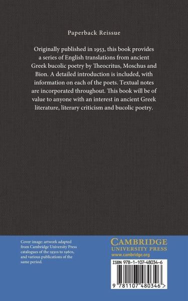 Originally published in 1953, this book provides a series of English translations from ancient Greek bucolic poetry by Theocritus, Moschus and Bion. A detailed introduction is included, with information on each of the poets. Textual notes are incorporated throughout.