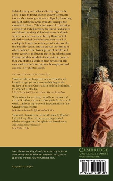 Political activity and political thinking began in the cities and other states of ancient Greece, and terms such as tyranny, aristocracy, oligarchy, democracy and politics itself are Greek words for concepts first discussed in Greece. Rhodes presents in translation a selection of texts illustrating the formal mechanisms and informal workings of the Greek states in all their variety. From the states described by Homer out of which the classical Greeks believed their states had developed, through the archaic period which saw the rise and fall of tyrants and the gradual broadening of citizen bodies, to the classical period of the fifth and fourth centuries, Rhodes also looks beyond that to the Hellenistic and Roman periods in which the Greeks tried to preserve their way of life in a world of great powers. For this second edition the book has been thoroughly revised and three new chapters added.