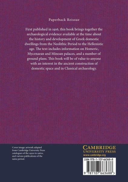First published in 1916, this book brings together the archaeological evidence available at the time about the history and development of Greek domestic dwellings from the Neolithic Period to the Hellenistic age. The text includes information on Homeric, Mycenaean and Minoan palaces, and a number of ground plans. This book will be of value to anyone with an interest in the ancient construction of domestic space and in Classical archaeology.