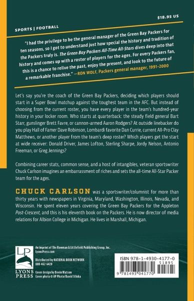 Let’s say you’re the coach of the Green Bay Packers, deciding which players should start in a Super Bowl match-up against the toughest team in the AFC. But instead of choosing from the current roster, you have every player in the team’s100-year history in your locker room. Combining career stats, common sense, and a host of intangibles, veteran sportswriter Chuck Carlson imagines an embarrassment of riches and sets the all-time All-Star Green Bay Packers lineup for the ages.