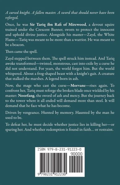 A fallen knight. A forgotten curse. A sword that should not have been reforged. Once, he was Sir Tariq ibn Rafi of Mirewood, a squire to a noble hero, a warrior in training under the Crescent Banner-a man sworn to justice, to discipline, to the sacred code of the faith. Then the spell hit. His master fell. And Tariq became something else. Cursed into the body of a frog, he vanished from the world of knights and mosques, banners and vows. For years, he wandered the wilds, a beast of tooth and claw, a monster whispered of in border villages, a creature too broken to pray and too proud to die. But rage doesn't burn forever. Not even in the hollow heart of a fallen knight. When a strange mercenary named Brindle finds him in the swamp and speaks of an evil mage rising again-Morvane, the very sorceress who cursed him-Tariq sees his path. To confront her, he must first recover the broken sword Noorfang, once wielded by his master. To wield it, he must survive the ruins of Emberglass. And to survive, he must decide whether he is still the man who once took an oath... or just the beast the world believes him to be. He was trained to kill for justice. He became a monster for vengeance. Now, he must decide whether mercy is weakness. Or if it's the only way back to himself.