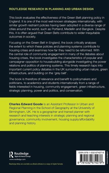 List of figures and tables Preface Acknowledgements Chapter 1: Introduction Chapter 2: Researching the Green Belt Chapter 3: The history of the Green Belt Chapter 4: The form and function of the Green Belt and an evaluation of its effectiveness Chapter 5: Power and interest groups in planning Chapter 6: The Green Belt, the housing crisis and policy reform Chapter 7: Conceptualising community support for the Green Belt and opposition to housebuilding Chapter 8: Power, politics and planning Chapter 9: The geography and governance of the Green Belt Chapter 10: Overarching implications for planning theory and practice References Index