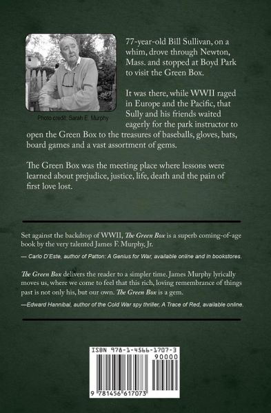 77-year-old Bill Sullivan, on a whim, drove through Newton, Mass. and stopped at Boyd Park to visit the Green Box. It was there, while WWII raged in Europe and the Pacific, that Sully and his friends waited eagerly for the park instructor to open the Green Box to the treasures of baseballs, gloves, bats, board games and a vast assortment of gems. The Green Box was the meeting place where lessons were learned about prejudice, justice, life, death and the pain of first love lost.