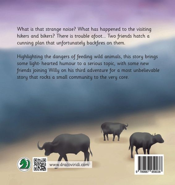 This is the fourth book featuring Willy, The Green Dragon. This time set in the small rural town of Mui Wo on the island of Lantau, Willy is invited to help a friend in need. Highlighting the dangers of feeding wild animals, this story tells a tale of true events involving the amber cows and buffalos of this community. What is that strange noise? What has happened to the visiting hikers and bikers? There is trouble afoot..... Two friends hatch a cunning plan that unfortunately backfires on them. Highlighting the dangers of feeding wild animals, this story brings some light-hearted humour to a serious topic, with some new friends joining Willy on his third adventure for a most unbelievable story that rocks a small community to the very core! Based on true events set in a small rural village after cows and buffalos helped themselves to the produce section in the local supermarket. Inspired by this true story, the author tells the tale of what likely happened after their misadventure! A fun book with a strong message to protect wild animals.