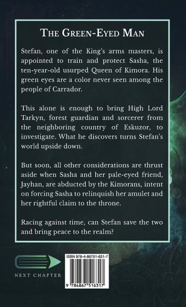Stefan, one of the King's arms masters, is appointed to train and protect Sasha, the ten-year-old usurped Queen of Kimora. His green eyes are a color never seen among the people of Carrador. This alone is enough to bring High Lord Tarkyn, forest guardian and sorcerer from the neighboring country of Eskuzor, to investigate. What he discovers turns Stefan's world upside down. But soon, all other considerations are thrust aside when Sasha and her pale-eyed friend, Jayhan, are abducted by the Kimorans, intent on forcing Sasha to relinquish her amulet and her rightful claim to the throne. Racing against time, can Stefan save the two and bring peace to the realm?
