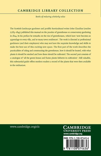 The Scottish landscape gardener and prolific horticultural writer John Claudius Loudon (1783-1843) published this manual on the practice of greenhouse or conservatory gardening in 1824. In his preface he remarks on the rise of greenhouses, which have 'now become an appendage to every villa, and to many town residences'. The work is directed at professional gardeners (and their employers) who may not have the requisite knowledge and skills to make the best use of this exciting new space. The first part of the work describes the practicalities of siting and constructing the greenhouse, how it should be heated, with what plants it should be stocked and how these should be cultivated. The second part consists of a catalogue of 'all the green-house and frame plants hitherto in cultivation'. Still valuable, this substantial guide offers modern readers a record of the plants that were then available to the enthusiast.
