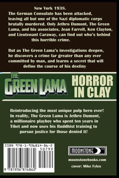 New York 1938. The German Consulate has been attacked, leaving all but one of the Nazi diplomatic corps brutally murdered. Only Jethro Dumont, the Green Lama, and his associates, Jean Farrell, Ken Clayton and Lieutenant Caraway, can find out who's behind this horrible crime. But as the Green Lama's investigations deepen, he discovers a crime far greater than any ever committed by man, and learns a secret that will define the course of his destiny. Reintroducing the most unique Pulp Hero ever! In reality, The Green Lama is Jethro Dumont, a millionaire playboy who spent ten years in Tibet and now uses his Buddhist training to pursue Justice for those denied it!