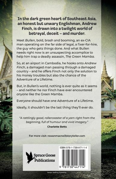 In the dark green heart of Southeast Asia, an honest but unwary Englishman, Andrew Finch, is drawn into a twilight world of betrayal, deceit - and murder. Meet Bullen, bold, brash and booming, an ex-CIA man operating on the far side of legal, a fixer-for-hire, the guy who gets things done. And what Bullen needs right now is an unsuspecting accomplice to help him trap a deadly assassin, The Green Mamba. So, at an airport in Cambodia, he hooks onto Andrew Finch, a damaged man passing through a damaged country - and he offers Finch not only the solution to his money troubles but also the chance of the Adventure of a Lifetime. But, in Bullen's world, nothing is ever quite as it seems - and neither he nor Finch have ever encountered anyone like the Green Mamba. Everyone should have one Adventure of a Lifetime. Ideally, it shouldn't be the last thing they'll ever do.