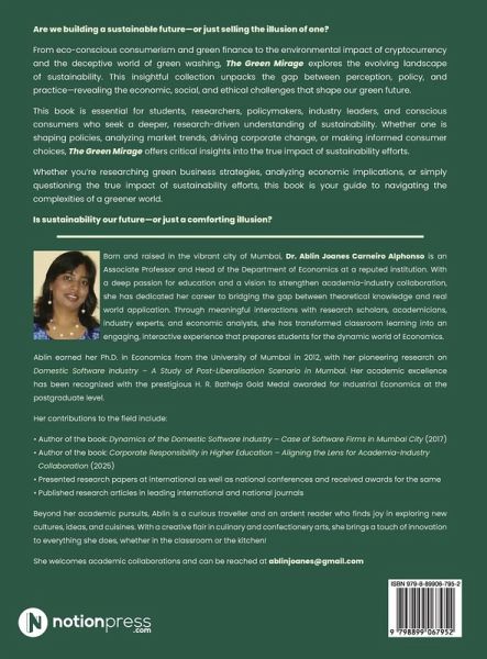 Are we building a sustainable future-or just selling the illusion of one? From eco-conscious consumerism and green finance to the environmental impact of cryptocurrency and the deceptive world of green washing, The Green Mirage explores the evolving landscape of sustainability. This insightful collection unpacks the gap between perception, policy, and practice-revealing the economic, social, and ethical challenges that shape our green future. This book is essential for students, researchers, policymakers, industry leaders, and conscious consumers who seek a deeper, research-driven understanding of sustainability. Whether one is shaping policies, analyzing market trends, driving corporate change, or making informed consumer choices, The Green Mirage offers critical insights into the true impact of sustainability efforts. Whether you're researching green business strategies, analyzing economic implications, or simply questioning the true impact of sustainability efforts, this book is your guide to navigating the complexities of a greener world. Is sustainability our future-or just a comforting illusion?