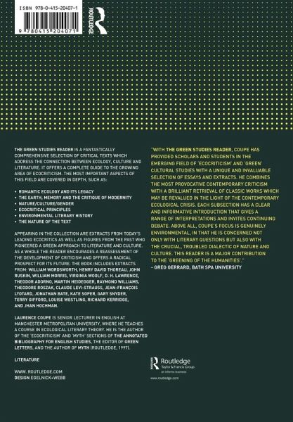 Green Studies is a booming area for study and The Green Studies Reader is a fantastically comprehensive selection of critical texts which address the connection between ecology, culture, and literature. It offers a complete guide to the growing area of 'ecocriticism' and a wealth of material on green issues from the romantic period to the present.