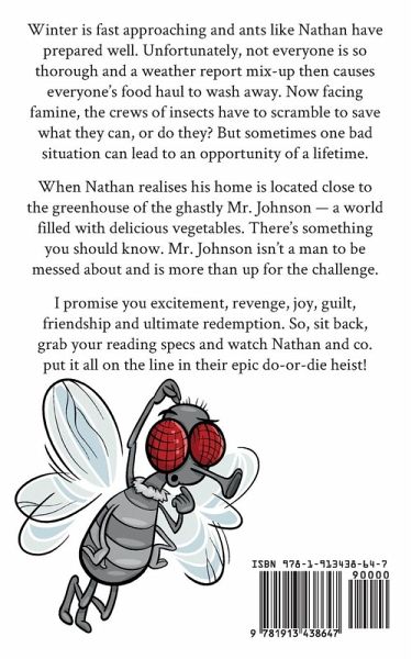 Winter is fast approaching and ants like Nathan have prepared well. Unfortunately, not everyone is so thorough and a weather report mix-up then causes everyone's food haul to wash away. Now facing famine, the crews of insects have to scramble to save what they can, or do they? But sometimes one bad situation can lead to an opportunity of a lifetime. When Nathan realises his home is located close to the greenhouse of the ghastly Mr. Johnson - a world filled with delicious vegetables. There's something you should know. Mr. Johnson isn't a man to be messed about and is more than up for the challenge. I promise you excitement, revenge, joy, guilt, friendship and ultimate redemption. So, sit back, grab your reading specs and watch Nathan and co. put it all on the line in their epic do-or-die heist!