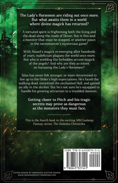 The Lady's Horsemen are riding out once more. Carrying death's scythe to where tormented souls linger. But what awaits them in a world where divine magick has returned? Pitch is recovered from the injuries he received in the Forest of Dean, and Silas won't soon forget the part he played in setting his guardian back on his feet. The ankou and the daemon have been reunited in a most unexpected and intimate way, but barely have they caught their breath when a new threat arises. A tortured spirit is frightening both the living and the dead along the roads of Devon. But is this soul a monster that must be stopped, or another pawn in the necromancer's mysterious game? With Azazel's magick re-emerging after hundreds of years, maleficium plagues the world once more. But who is wielding the forbidden arcane magick of the angels? Do they work alone? And why are they so intent on harassing the Lady's Horsemen? Silas has never felt stronger, or more determined to live up to the Order's high expectations. He's faced the walking dead, outwitted the enchanted Hall, and gained an ally in the skriker. But he's not sure he's equipped to handle his growing attraction to a troubled daemon. And Silas fears that getting any closer to Pitch and his tragic secrets may prove as dangerous as the monsters they are riding to face. The Diabolus Chronicles is a slow-burn MM Gaslamp Fantasy series that contains on-page sex scenes, gore and violence, and rather a lot of cursing. This is the fourth book in the on-going series. (*READER NOTE - This book contains violence, and a scene of sexual assault between supernatural characters)
