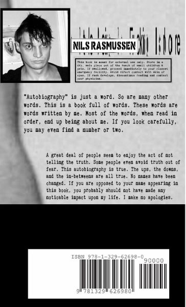 Nils Rasmussen, front-man for the electro-junk-punk band, Uncle Outrage, has released his autobiography at age 30. Pretty ballsy if you ask me. But THIS isn't your mom & pop's type of autobiography. This is... Well... It's insane. It's new. I GUARANTEE that you've never read, let alone SEEN, a book quite like this one... Inspired by writers such as Robert Sheckley, Kurt Vonnegut Jr., Stephen King, Philip K. Dick, Isaac Asimov, Arthur C. Clarke, H.P. Lovecraft, Ray Bradbury, Stanislaw Lem, Jim Jefferies, David Cross, Aziz Ansari, Norm McDonald, Bill Burr, Louis C.K., Harlan Ellison, Steven L. Peck, John Wyndham, & Clifford D. Simak...