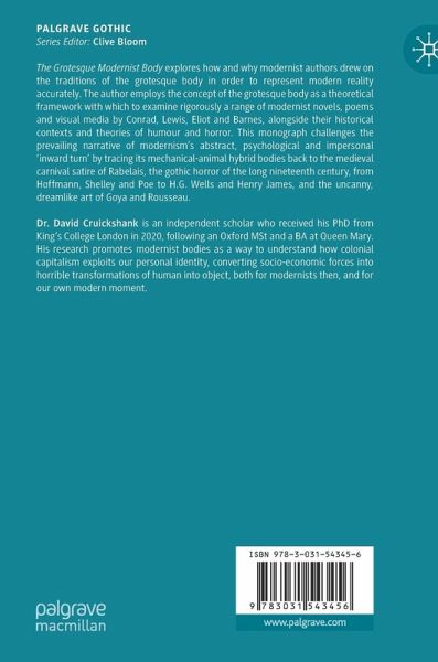 The Grotesque Modernist Body explores how and why modernist authors drew on the traditions of the grotesque body in order to represent modern reality accurately. The author employs the concept of the grotesque body as a theoretical framework with which to examine rigorously a range of modernist novels, poems and visual media by Conrad, Lewis, Eliot and Barnes, alongside their historical contexts and theories of humour and horror. This monograph challenges the prevailing narrative of modernism's abstract, psychological and impersonal 'inward turn' by tracing its mechanical-animal hybrid bodies back to