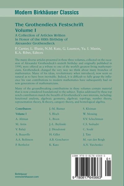 The many diverse articles presented in these three volumes, collected on the occasion of Alexander Grothendieck's sixtieth birthday and originally published in 1990, were offered as a tribute to one of the world's greatest living mathematicians. Grothendieck changed the very way we think about many branches of mathematics. Many of his ideas, revolutionary when introduced, now seem so natural as to have been inevitable. Indeed, it is difficult to fully grasp the influence his vast contributions to modern mathematics have subsequently had on new generations of mathematicians.