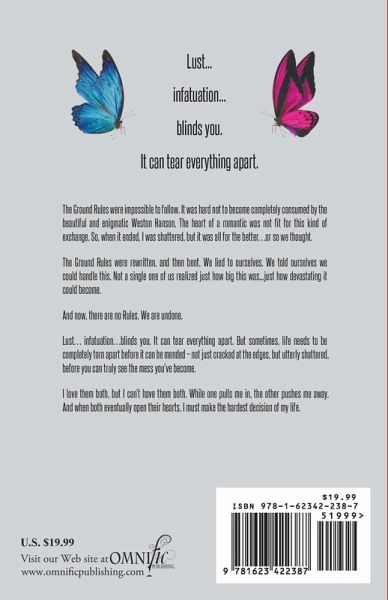 The Ground Rules were impossible to follow. It was hard not to become completely consumed by the beautiful and enigmatic Weston Hanson. The heart of a romantic was not fit for this kind of exchange. So, when it ended, I was shattered, but it was all for the better...or so we thought. The Ground Rules were rewritten, and then bent. We lied to ourselves. We told ourselves we could handle this. Not a single one of us realized just how big this was...just how devastating it could become. And now, there are no Rules. We are undone. Lust... infatuation...blinds you. It can tear everything apart. But sometimes, life needs to be completely torn apart before it can be mended - not just cracked at the edges, but utterly shattered, before you can truly see the mess you've become. I love them both, but I can't have them both. While one pulls me in, the other pushes me away. And when both eventually open their hearts, I must make the hardest decision of my life.