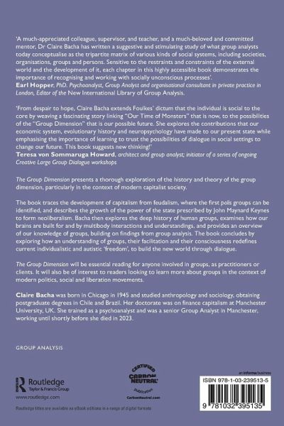 Claire Bacha was born in Chicago in 1945 and studied anthropology and sociology, obtaining postgraduate degrees in Chile and Brazil. Her doctorate was on finance capitalism at Manchester University, UK. She trained as a psychoanalyst and was a senior Group Analyst in Manchester, working until shortly before she died in 2023.