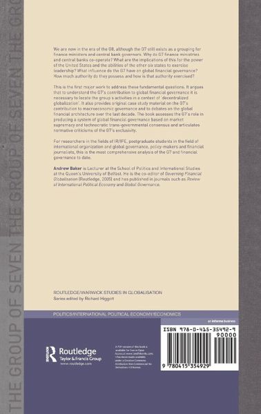 For researchers in the fields of IR/IPE generally, postgraduate students in the field of international organization and global governance, policy makers and financial journalists this is the most extensive analysis of the G7 and the political economy of global financial governance to date.
