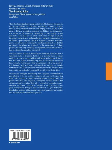 Since the second edition of this book was published, there has been a significant body of literature that has been published and advances made in the care of young children with spinal and thoracic deformities. This new edition will effectively help to standardize the care of these patients. Furthermore, other professionals, such as nurses, physical therapists and healthcare professionals in training, are usually not familiar with these conditions and are in need of a reference book to consult when caring for young children with spinal deformities. Sections are arranged thematically and comprise a comprehensive presentation of the current knowledge on disorders of the growing spine. After opening sections discussing general considerations and patient evaluation and diagnosis, subsequent sections describe the various categories of spinal deformity - idiopathic, congenital, neuromuscular, syndromic, and others - followed by surgical and non-surgical management strategies, both traditional and growth-friendly. Concluding sections address patient care and outcomes and outline future directions for research and practice.