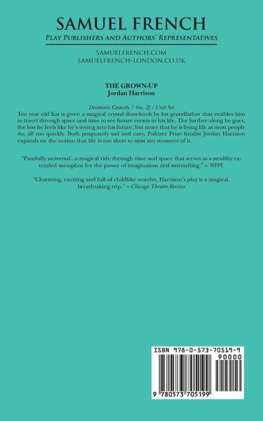 Ten-year-old Kai is given a magical crystal doorknob by his grandfather that enables him to travel through space and time to see future events in his life. The further along he goes, the less he feels like he's seeing into his future, but more that he is living life as most people do; all too quickly. Both poignantly sad and zany, Pulitzer Prize finalist Jordan Harrison expands on the notion that life is too short to miss any moment of it.