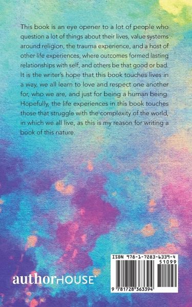 This book is an eye opener to a lot of people who question a lot of things about their lives, value systems around religion, the trauma experience, and a host of other life experiences, where outcomes formed lasting relationships with self, and others be that good or bad. It is the writer's hope that this book touches lives in a way, we all learn to love and respect one another for, who we are, and just for being a human being. Hopefully, the life experiences in this book touches those that struggle with the complexity of the world, in which we all live, as this is my reason for writing a book of this nature.