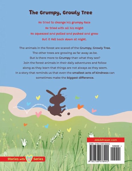 The animals in the forest are scared of the Grumpy, Growly Tree. The other trees are growing as far away as be. But is there more to Grumpy than what they see? Join the forest animals in their daily adventures and follow along as they learn that sometimes things are not always as they seem. In a story that reminds us that even the smallest acts of kindness can sometimes make the biggest difference.