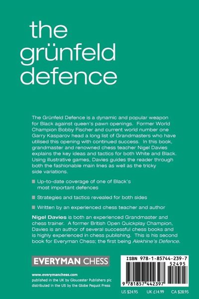 The Grunfeld Defence is a dynamic and popular counterattacking weapon for Black against queen's pawn openings. Former World Champion Bobby Fischer and current world number one Garry Kasparov head a long list of grandmasters that have utilised this opening with continued success. In this book, grandmaster and renowned chess teacher Nigel Davies explains the key ideas and tactics for both White and Black. Using illustrative games, Davies guides the reader through both the fashionable main lines and the tricky side variations, and provides his opinion on all the crucial questions arising from this opening. *Up-to-date coverage of one of Black's most important defences *Strategies and tactics revealed for both sides *Written by an experienced chess teacher and author Nigel Davies is both an experienced grandmaster and chess trainer. A former British Open Quickplay Champion, Davies is an author of several successful chess books and is highly experienced in chess publishing. This is his second book for Everyman Chess; his first was Alekhine's Defence.