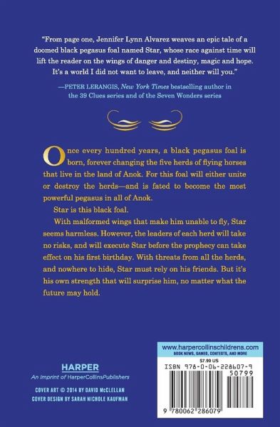 Riders of the Realm author Jennifer Lynn Alvarez "will lift the reader on the wings of danger and destiny, magic and hope"* in this first book in an action-packed fantasy adventure series. Perfect for fans of the Warriors and Guardians of Ga'Hoole series. Once every hundred years, a black foal is born, prophesied to either unite or destroy the five herds of winged horses that live in Anok--fated to become the most powerful Pegasus in all the land. Star is this black foal. Even though Star seems harmless because he's unable to fly, the leaders of each herd aren't willing take any risks. So, they plan to execute Star before his first birthday. With the threats against him mounting, Star must rely on his friends and the untapped power within to win an epic battle between good and evil. * (New York Times bestselling author Peter Lerangis)