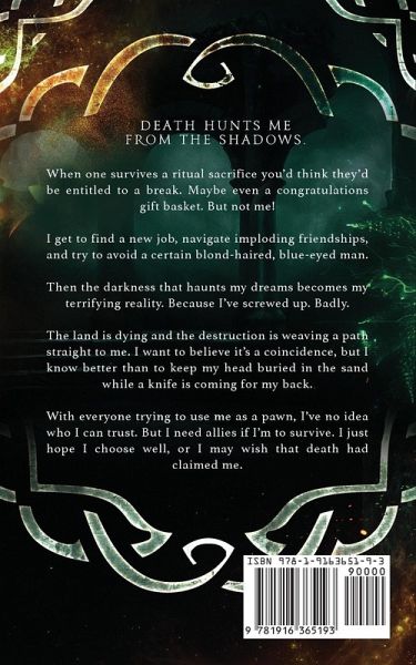 Death hunts me from the shadows. When one survives a ritual sacrifice you'd think they'd be entitled to a break. Maybe even a congratulations gift basket. But not me! I get to find a new job, navigate imploding friendships, and try to avoid a certain blond-haired, blue-eyed man. Then the darkness that haunts my dreams becomes my terrifying reality. Because I've screwed up. Badly. The land is dying and the destruction is weaving a path straight to me. I want to believe it's a coincidence, but I know better than to keep my head buried in the sand while a knife is coming for my back. With everyone trying to use me as a pawn, I've no idea who I can trust. But I need allies if I'm to survive. I just hope I choose well, or I may wish that death had claimed me. If you love your urban fantasy fast-paced and with a modern twist on mythology you'll love the third installment of the Celtic Curses series.