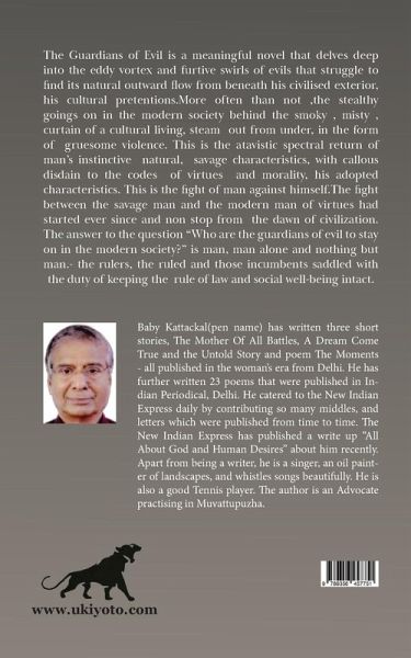 The Guardians of Evil is a meaningful novel that delves deep into the eddy vortex and furtive swirls of evils that struggle to find its natural outward flow from beneath his civilised exterior, his cultural pretentions.. More often than not ,the stealthy goings on in the modern society behind the smoky , misty , curtain of a cultural living, steam out from under, in the form of gruesome violence. This is the atavistic spectral return of man's instinctive natural, savage characteristics, with callous disdain to the codes of virtues and morality, his adopted characteristics. This is the fight of man against himself.The fight between the savage man and the modern man of virtues had started ever since and non stop from the dawn of civilization. The answer to the question ""Who are the guardians of evil to stay on in the modern society?"" is man , man alone and nothing but man.- the rulers, the ruled and those incumbents saddled with the duty of keeping the rule of law and social well-being intact. . Author