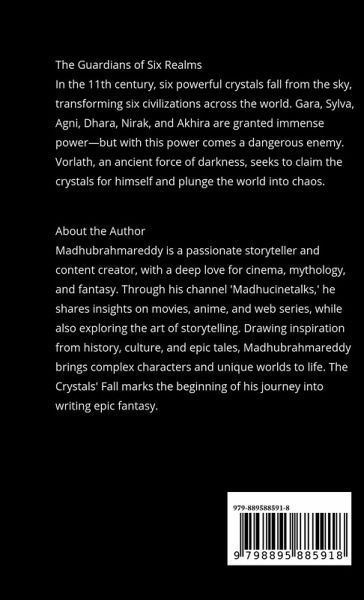 In a world divided by six powerful realms, each guardian holds the key to an ancient crystal, a relic that bestows unimaginable power and responsibility. These crystals, once a source of unity, now threaten to shatter the fragile peace as old rivalries resurface and dark forces emerge from the shadows. The Guardians, leaders of their respective realms, must navigate political tensions, uncover hidden truths, and prepare for a conflict that could plunge the world into chaos. From the icy mountains of Agni to the deserts of Gara, each realm stands on the brink of war, and only by coming together can they hope to defend against the rising tide of darkness. But as secrets from the past come to light, the Guardians must ask themselves: can they trust one another, or will their own ambitions lead to the destruction of everything they've sworn to protect? Guardians of the Six Realms is an epic tale of power, destiny, and survival, where the fate of the world rests in the hands of six leaders and their armies. The first in a breathtaking series, this story takes readers on a journey of intrigue, betrayal, and the fight to safeguard a world on the edge of ruin.