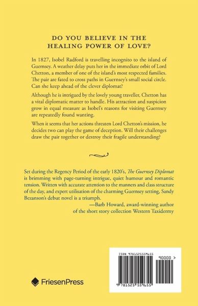 Do you believe in the healing power of love? In 1827, Isobel Radford is travelling incognito to the island of Guernsey. A weather delay puts her in the immediate orbit of Lord Chetton, a member of one of the island's most respected families. The pair are fated to cross paths in Guernsey's small social circle. Can she keep ahead of the clever diplomat? Although he is intrigued by the lovely young traveller, Chetton has a vital diplomatic matter to handle. His attraction and suspicion grow in equal measure as Isobel's reasons for visiting Guernsey are repeatedly found wanting. When it seems that her actions threaten Lord Chetton's mission, he decides two can play the game of deception. Will their challenges draw the pair together or destroy their fragile understanding?