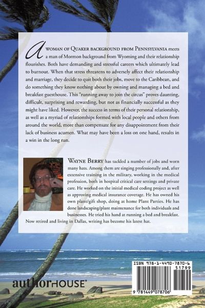 A woman of Quaker background from Pennsylvania meets a man of Mormon background from Wyoming and their relationship flouishes. Both have demanding and stressful careers which ultimately lead to burnout. When that stress threathens to adversely affect their relationship and marraige, they decide to quit both their jobs, move to the Caribbean, and do something they know nothing about by owning and managing a bed and breakfast guesthouse. This "running away to join the circus" proves duanting, difficult, surprising and rewarding, but not as financially successful as they might have liked. However, the success in terms of their personal relationship, as well as a myriad of relationships formed with local people and others from around the world, more than compensate for any disappointment from their lack of business acumen. What may have been a loss on one hand, results in a win in the long run.
