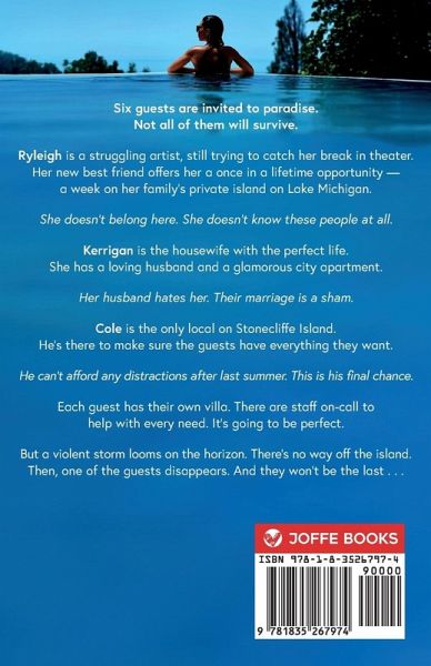 Six guests are invited to paradise. Each guest has their own villa. There are staff on-call to help with every need. But a violent storm looms on the horizon. There's no way off the island.