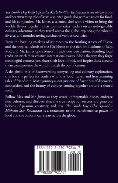 The Guide Dog Who Opened a Michelin-Star Restaurant is an adventurous and heartwarming tale of Max, a spirited guide dog with a passion for food, and his companion, Mr. James, a talented chef with a vision to bring the world's flavors together. Their journey takes readers on an unforgettable culinary adventure, as they travel across the globe, exploring the vibrant, diverse, and mouthwatering cuisines of various countries. From the bustling markets of Morocco to the bustling streets of Tokyo, and the tropical islands of the Caribbean to the rich food culture of Italy, Max and Mr. James open bistros in each new destination, blending local traditions with their creative international twists. Along the way, they forge meaningful connections, share their love of food, and inspire those around them to experience the world through the joy of cuisine. A delightful mix of heartwarming storytelling and culinary exploration, this book is perfect for readers who love food, travel, and heartwarming tales of friendship. Max's journey is not just one of flavor but of discovery, connection, and the beauty of cultures coming together around a shared meal. Follow Max and Mr. James as they create unforgettable dishes, embrace new cultures, and discover that the true recipe for success is a generous helping of passion, creativity, and love. The Guide Dog Who Opened a Michelin-Star Restaurant is a testament to the transformative power of food and the bonds it can create across the globe.