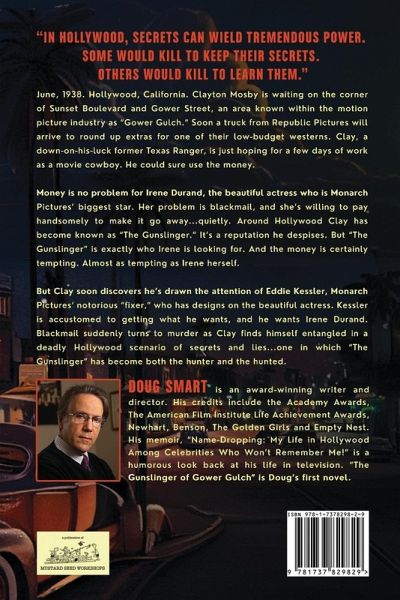 "In Hollywood, secrets can wield tremendous power. Some would kill to keep their secrets. Others would kill to learn them." June, 1938. Hollywood, California. Clayton Mosby is waiting on the corner of Sunset Boulevard and Gower Street, an area known within the motion picture industry as "Gower Gulch." Soon a truck from Republic Pictures will arrive to round up extras for one of their low-budget westerns. Clay, a down-on-his-luck former Texas Ranger, is just hoping for a few days of work as a movie cowboy. He could sure use the money. Money is no problem for Irene Durand, the beautiful actress who is Monarch Pictures' biggest star. Her problem is blackmail, and she's willing to pay handsomely to make it go away...quietly. Around Hollywood Clay has become known as "The Gunslinger." It's a reputation he despises. But "The Gunslinger" is exactly who Irene is looking for. And the money is certainly tempting. Almost as tempting as Irene herself. But Clay soon discovers he's drawn the attention of Eddie Kessler, Monarch Pictures' notorious "fixer," who has designs on the beautiful actress. Kessler is accustomed to getting what he wants, and he wants Irene Durand. Blackmail suddenly turns to murder as Clay finds himself entangled in a deadly Hollywood plot of secrets and lies...a plot in which "The Gunslinger" has become both the hunter and the hunted.