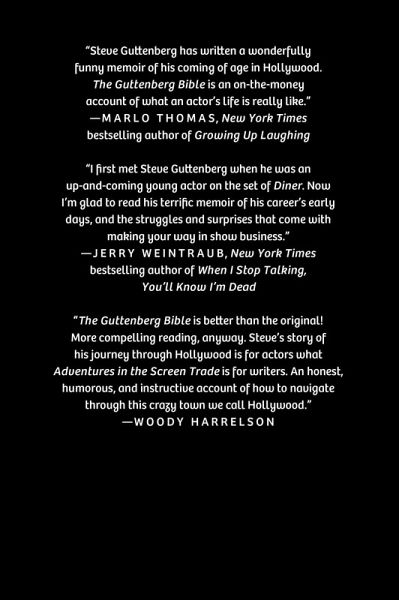 "Forget being an actor. You don't have the look, you don't have the talent, and your name is ridiculous. You are the last guy I would ever pick to be a movie star." This was the first piece of advice Steve Guttenberg ever received from an agent. Like many other times in his life, he didn't listen. In this honest, charming memoir, Guttenberg tells the unique story of his first decade in Hollywood, as he went from being a complete unknown to starring in some of the most successful blockbusters of all time. He spent his early days sneaking onto the Paramount lot and meeting more actors and casting agents than most aspiring actors ever would. Even before the hit Police Academy---which his manager said would be a flop---he had already worked with such luminaries as Lord Laurence Olivier, Richard Widmark, and Gregory Peck. Later he shared the screen with actors such as Mickey Rourke and Sharon Stone long before they became household names. Guttenberg has lived through the addictive pull of show business and worldwide celebrity (you're no one until you have a stalker, he learns). With a clear-eyed appreciation for the one-of-a-kind experiences that the celebrity lifestyle has to offer, he knew that his family would keep him grounded throughout it all. And his self-awareness and sense of humor about the ups and downs of fame make The Guttenberg Bible one of the most candid Hollywood stories to date.
