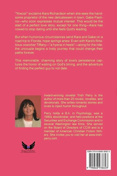 "Yowza!" exclaims Kara Richardson when she sees the handsome proprietor of the new delicatessen in town, Gabe Paolino-who soon expresses mutual interest. This would be the start of a perfect love story, except for one thing-Kara has vowed to stop dating until she feels God's leading. But when humorous circumstances send Kara and Gabe on a road trip to Florida, hope springs anew. Even with Kara's flirtatious coworker Tiffany-"a hyena in heels"-along for the ride, the uncouple begins a lively journey that could change their paths forever. This memorable, charming story of love's persistence captures the honor of waiting on God's timing, and the adventure of finding the perfect guy to not date.