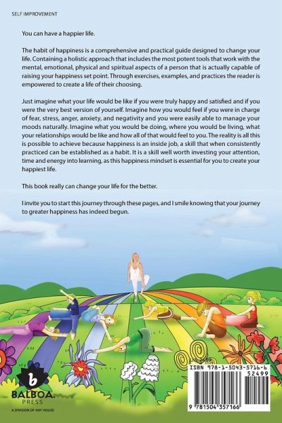 You can have a happier life. The habit of happiness is a comprehensive and practical guide designed to change you life. A holistic approach that contains the most potent tools that work with the mental, emotional, physical and spiritual aspects of a person. Through exercises, examples and practices the reader is empowered to create a life of their choosing. Just imagine what your life would be like if you were truly happy and satisfied and if you were the very best version of yourself. Imagine how you would feel if you were in charge of fear, stress, anger, anxiety and negativity and you were easily able to naturally mange your moods. Imagine what you would be doing, where you would be living, what your relationships would be like and how all of that would feel to you. The reality is all this is possible to achieve because happiness is an inside job, a skill that when consistently practiced can be established as a habit. It is a skill well worth investing your attention, time and energy into learning, as this happiness mindset is essential for you to create your happiest life. This book really can change you life for the better. I invite you to start this journey through these pages and I smile knowing that your journey to greater happiness has truly begun.