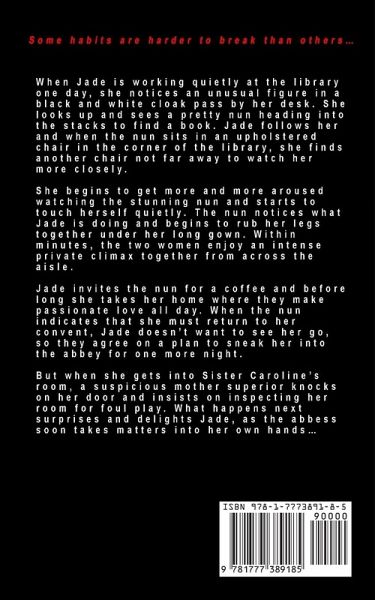 Some habits are harder to break than others... When Jade is working quietly at the library one day, she notices an unusual figure in a black and white cloak pass by her desk. She looks up and sees a pretty nun heading into the stacks to find a book. Jade follows her and when the nun sits in an upholstered chair in the corner of the library, she finds another chair not far away to watch her more closely. She begins to get more and more aroused watching the stunning nun and starts to touch herself quietly. The nun notices what Jade is doing and begins to rub her legs together under her long gown. Within minutes, the two women enjoy an intense private climax together from across the aisle. Jade invites the nun for a coffee and before long she takes her home where they make passionate love all day. When the nun indicates that she must return to her convent, Jade doesn't want to see her go, so they agree on a plan to sneak her into the abbey for one more night. But when she gets into Sister Caroline's room, a suspicious mother superior knocks on her door and insists on inspecting her room for foul play. What happens next surprises and delights Jade, as the abbess soon takes matters into her own hands...
