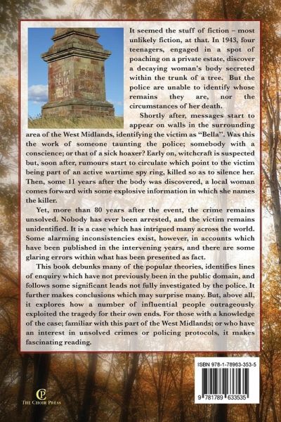 In 1943, four teenagers, engaged in a spot of poaching on a private estate within Hagley Wood, near Birmingham, England discover a decaying woman's body secreted within the trunk of a tree. The police are unable to identify whose remains they are, nor the circumstances of her death. Shortly after, messages start to appear on walls in the surrounding area of the West Midlands, identifying the victim as "Bella", and rumours start to circulate which point to her having been part of an active wartime spy ring, killed so as to silence her. Then, some 11 years after the body was discovered, a local woman comes forward with some explosive information in which she names the killer. Yet, more than 80 years after the event, the crime remains unsolved. Nobody has ever been arrested, and the victim remains unidentified. It is a case which has intrigued many across the world. The Hagley Wood Tree Murder takes a critical look at the case and its investigation, with reference to original police documents. It debunks many of the popular theories, identifies lines of enquiry which have not previously been in the public domain, and follows some significant leads not fully explored at the time. Above all, it explores how a number of influential people outrageously exploited the tragedy for their own ends. The Hagley Wood Tree Murder will be of interest to anyone who has a knowledge of the case or an interest in unsolved crimes or policing protocols, and especially for those who are familiar with this part of the West Midlands.